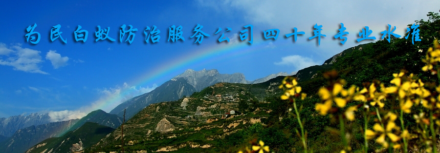 •  自信源于實力,品質造就品牌。當陽市為民白蟻防治有限公司將一如既往利用精湛技術的優勢,依托各界成功客戶的強大支持,以“為民除害、誠信高效、服務一流”為企業宗旨,積極吸取國內外的先進技術和管理,全力以赴為人民的安居樂業做貢獻,以自信驕傲的姿態,成為湖北地區白蟻防治的一朵奇葩!